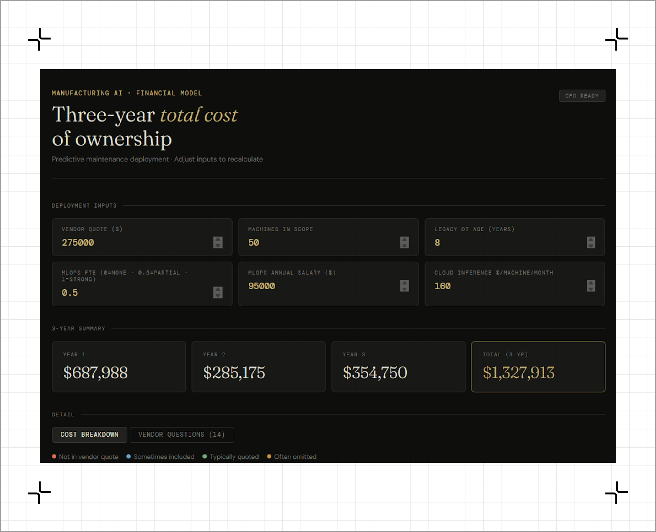 What you need: The vendor quote, number of machines in scope, your legacy infrastructure age, and current internal MLOps capability.