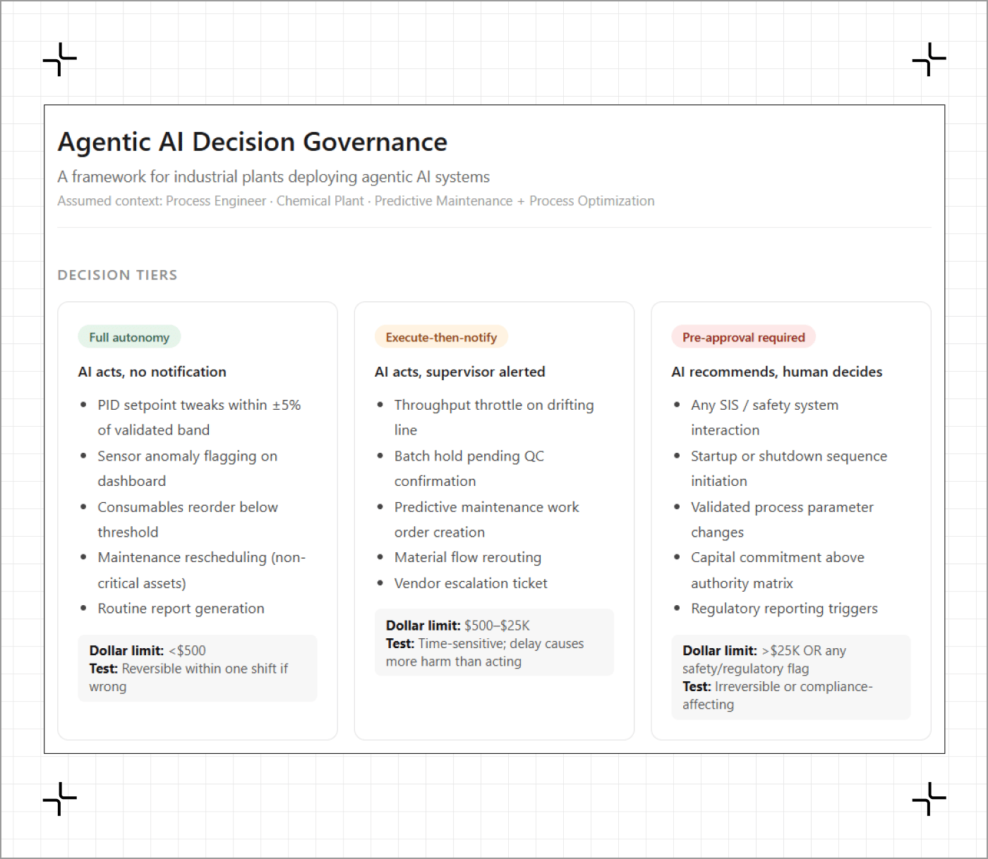But what happens when an AI agent autonomously changes a process parameter at 3am because it predicted incorrectly that the change would improve yield?