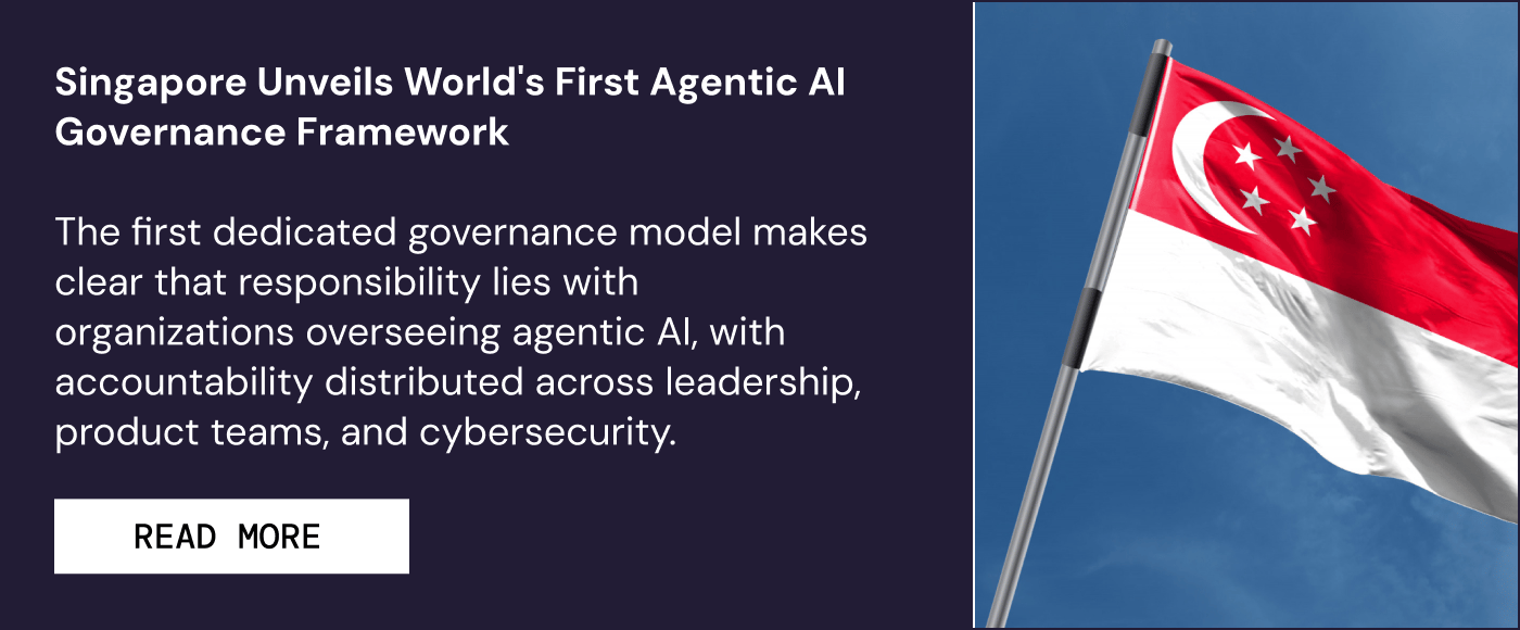 Singapore's framework released January 2026 takes the same approach, distributing responsibility across leadership who define goals, product teams who handle design, and cybersecurity teams who protect systems.