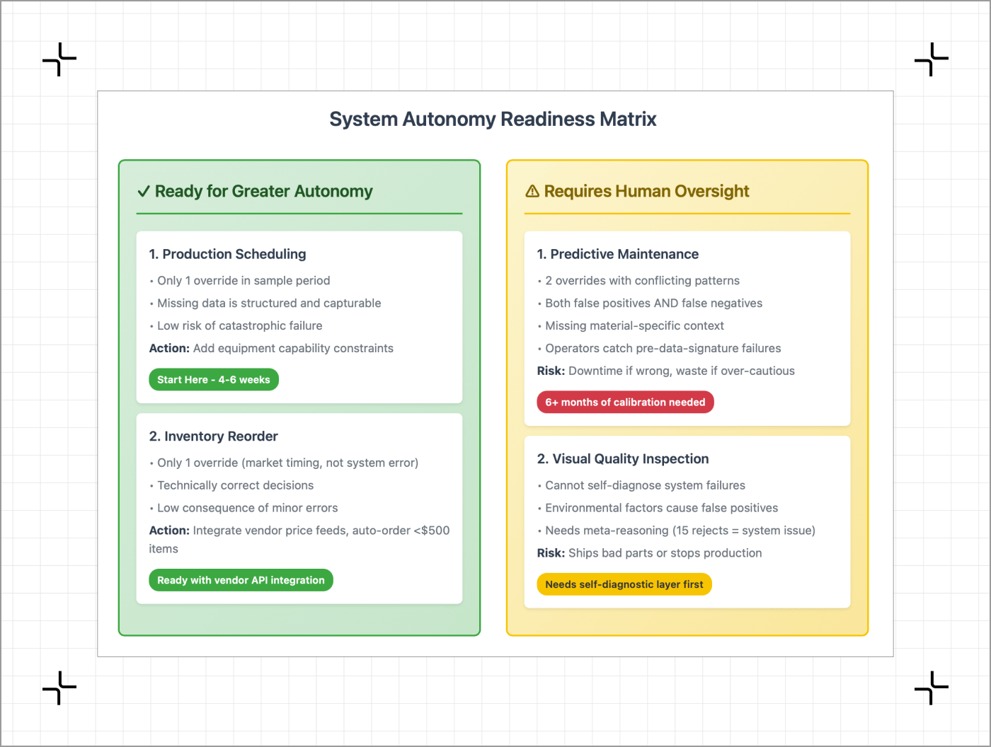 The problem: You have automated systems across your plant, but you don't know which ones are ready to operate more autonomously and which ones still depend on human judgment to catch what the sensors miss.